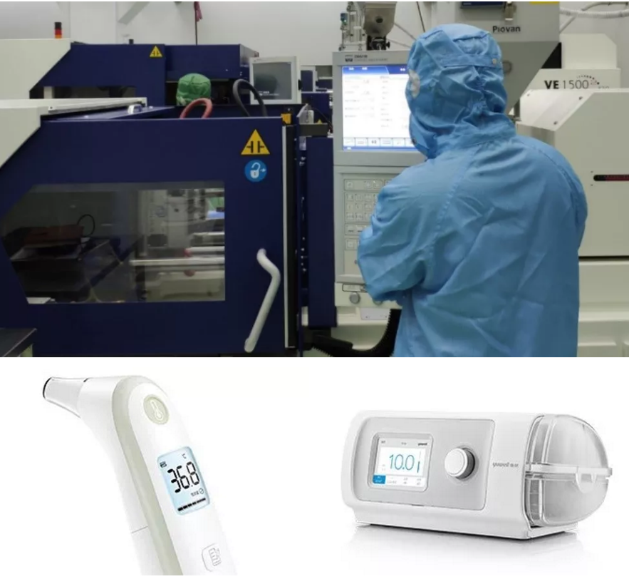 此外,這次疫情中,作為居民必備品的口罩和護目鏡需求量急劇增加,相關企業夜以繼日地趕制。部分專業級口罩上的塑料呼吸閥是一個對精度要求高的部件,在一些專業生產口罩的醫療企業里,長飛亞設備也擔綱重任,以高精度的呼吸閥守護著人們的健康安全。