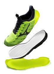 ????????美津濃新款訓練鞋采用的新型優化聚氨酯材料具備優異的耐水解性和粘合強度。與傳統材料不同,巴斯夫聚氨酯材料可以輕松、無縫地與模壓在中底表面凹凸不平的激活凸點完美貼合。