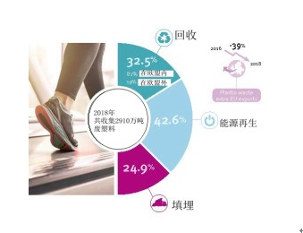 ????????2018年歐洲共收集了2910萬噸廢塑料,其中32.5%的廢塑料進(jìn)行了回收再生,42.6%的廢塑料進(jìn)行了能源轉(zhuǎn)換,24.9%的廢塑料進(jìn)行了填埋處理。