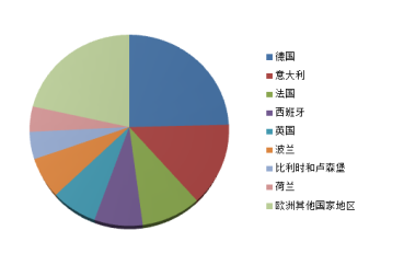 ????????歐洲本土的塑料加工商對塑料需求量為5120萬噸,按地域分布劃分,德國塑料加工商的需求量最大,為24.6%,其次分別為意大利(13.9%),法國(9.4%),西班牙(7.6%),英國(7.3%),波蘭(6.8%),比利時(shí)和盧森堡(4.6%),荷蘭(4.3%),其他歐洲國家地區(qū)共占21.5%。