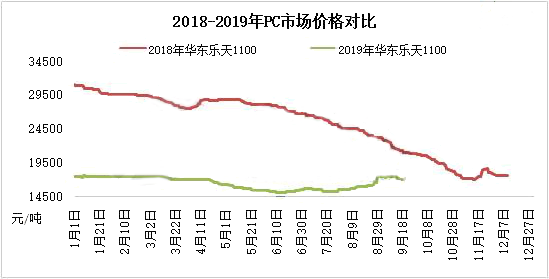 ????????PC: 9月份國(guó)內(nèi)PC市場(chǎng)報(bào)盤(pán)呈先揚(yáng)后抑的上漲走勢(shì)。場(chǎng)內(nèi)炒漲氣氛明顯,報(bào)盤(pán)大幅上調(diào),然終端消耗有限,市場(chǎng)走貨顯遲緩。分區(qū)域來(lái)看,華東市場(chǎng)報(bào)盤(pán)大幅走高,各主流牌號(hào)漲幅在850-1300元/噸;華南市場(chǎng)報(bào)盤(pán)上漲,各主流牌號(hào)漲幅在500-1100元/噸,貿(mào)易商操盤(pán)多靈活。
