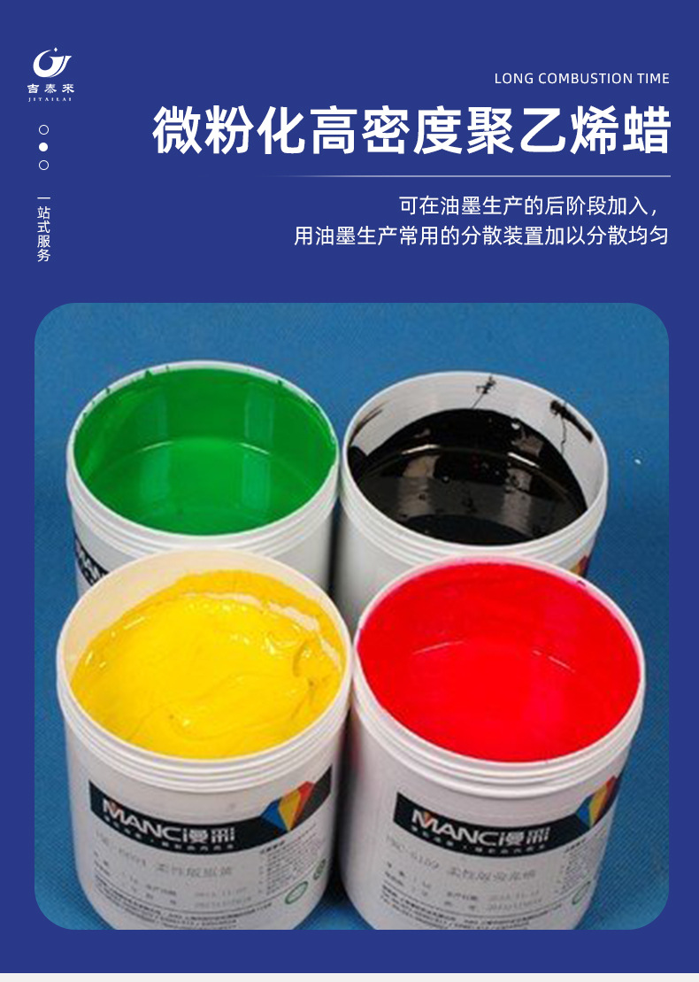 科萊恩蠟粉3620一般為總油墨量的1~2%。可在油墨生產的后階段加入,用油墨生產常用的分散裝置加以分散均勻。但應注意在分散過程中不要進一步降低蠟的細度及不可加熱超過70℃,以免蠟粒子變形和冷卻后重新結晶而引至凝聚,影響其性能。