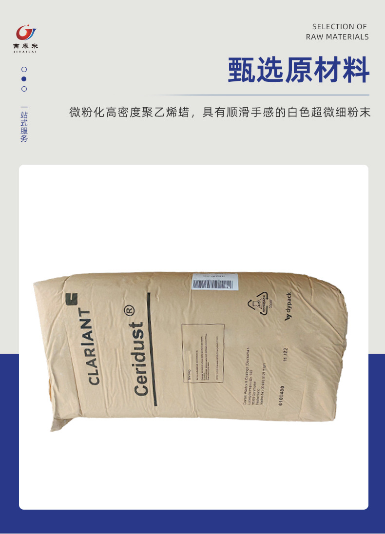 科萊恩蠟粉3620是微晶化、無色無味、高密度聚乙烯蠟,平均顆粒尺寸約為8.5微米,由于聚乙烯的韌性及它那適宜的顆粒大小分布,Ceridust科萊恩蠟粉3620可以使糊狀及液體油墨具有的抗磨性和防結塊性,可廣泛用于溶劑基平板,凹板及膠板表印和復合印刷油墨。產于德國科萊恩。