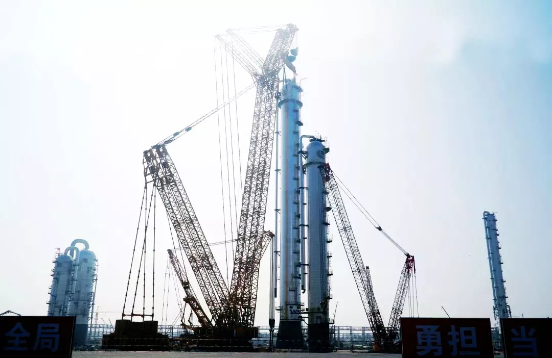 目前,乙烯裝置急冷水塔、急冷油塔、乙烯塔、1#丙烯塔和2#丙烯塔5個(gè)超千噸級大型設(shè)備陸續(xù)順利吊裝就位,標(biāo)志著項(xiàng)目乙烯裝置建設(shè)取得階段性勝利,設(shè)備安裝工作將迎來新一輪高峰。