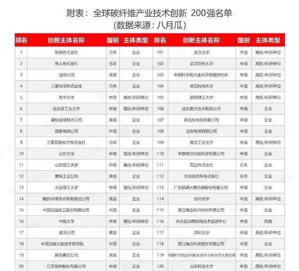 全球碳纖維產(chǎn)業(yè)技術(shù)創(chuàng)新200強報告發(fā)布