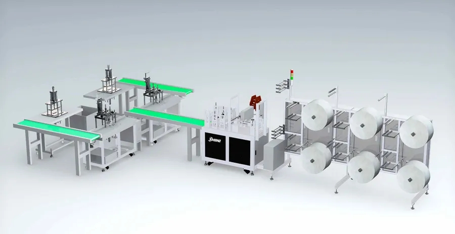 鑒于新型冠狀肺炎疫情在全球的大范圍持續(xù)傳播,為防疫物資的生產(chǎn)帶來了極大的挑戰(zhàn),其中最基本的防護(hù)用品口罩的需求成幾何倍數(shù)的增加。做為一家行業(yè)內(nèi)全球知名的設(shè)備生產(chǎn)商,信易自動化事業(yè)處快速反應(yīng),繼推出SMKS全自動一拖二平面口罩機(jī)后,全新推出N95/KN95口罩生產(chǎn)設(shè)備,主要用于N95/KN95口罩成型,整卷布料放卷后經(jīng)過滾輪驅(qū)動上料,布料通過自動上料,鼻梁條整卷牽引開卷,定長裁切后導(dǎo)入至包邊布料中。口罩外形通過超聲模具滾焊,焊接封邊,經(jīng)滾切刀裁切成型,通過滾筒將成型的口罩進(jìn)行輸出,再由人工用超聲波焊接耳帶,最后對口罩進(jìn)行封邊,標(biāo)準(zhǔn)整套設(shè)備:打片機(jī)x1+封邊機(jī)x2+耳帶機(jī)x2。