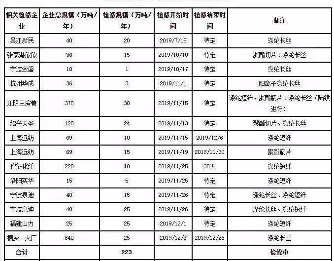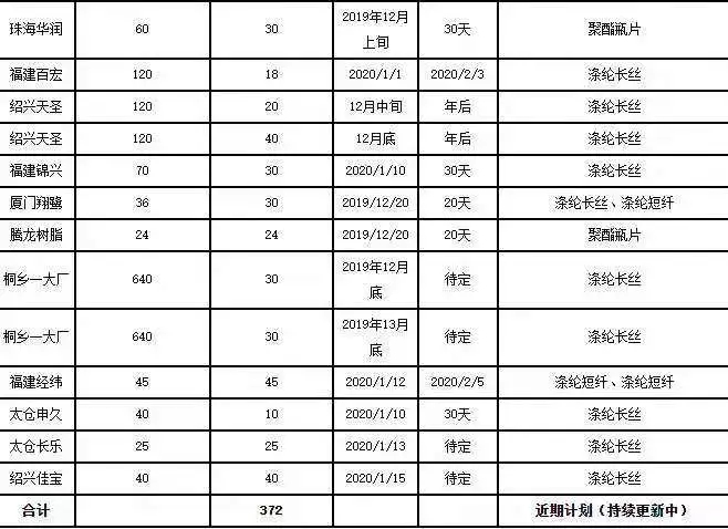 2019年底,聚酯裝置減產檢修or開車投產?