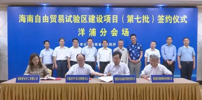 ????????此次簽約的項目分別是海南逸盛PTA二期項目、碳五碳九項目、60萬噸甲醇碳四綜合利用項目、陜西理工機電1萬噸氣流成型無塵紙項目、陜西天元1.5萬噸智能再制造項目、洋浦科創園合作開發項目以及洋浦電網發展戰略合作協議。