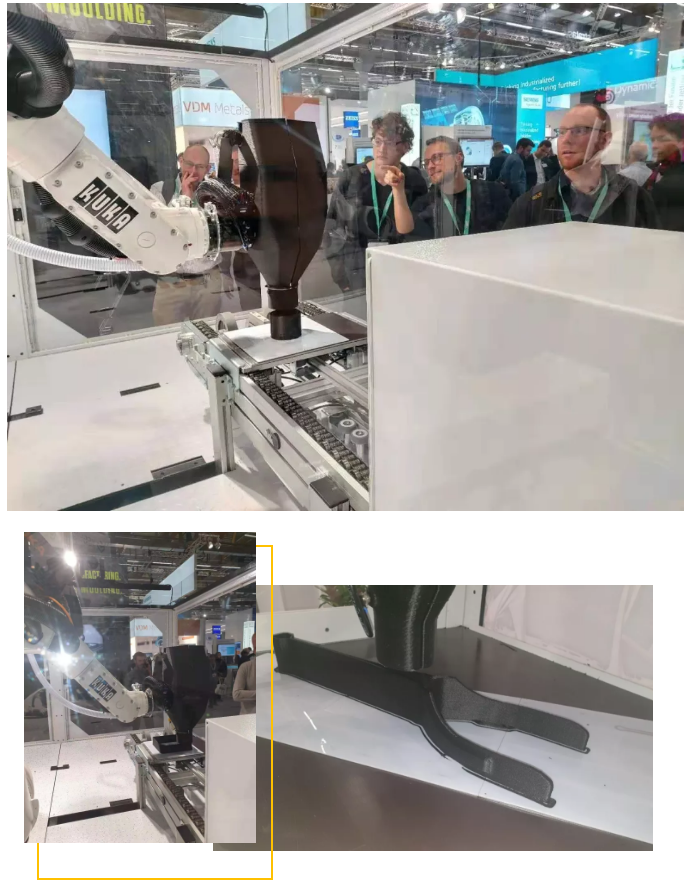 ????????據悉,伊之密SpaceA機器人柔性增材制造系統制品可適用于汽車、家電、建筑等領域,提供經濟高效的生產方法并實現非常規組件的高質量自動化生產。而通過將原料擠出的形式,SpaceA可以直接使用含纖維填充的熱塑性顆粒料進行生產。