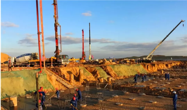 ????????10月4日上午,1、2號裂解爐基礎(chǔ)基槽驗收一次通過,于下午18時開始澆筑墊層,晚上22時澆筑完成。本次單臺裂解爐基礎(chǔ)墊層混凝土澆筑量為49立方米,該墊層的澆筑完成為下一步裂解爐基礎(chǔ)鋼筋綁扎、支模等工作打下了堅實的基礎(chǔ)。