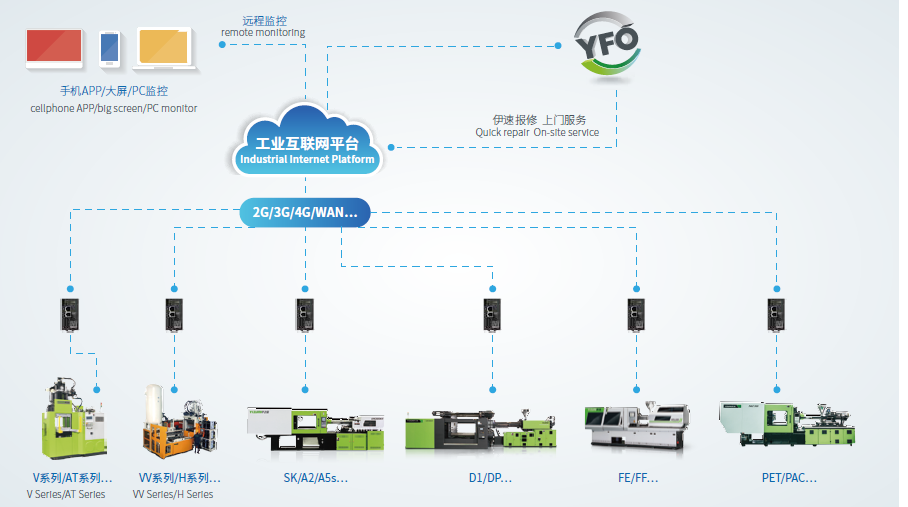 ????????工業4.0趨勢大潮之下,連接無處不在。此次K展上,伊之密工業互聯網平臺(IIoT)也是一大亮點。該平臺面向模壓成型領域,聚焦生產管理環節;應用物聯網、云計算、大數據、人工智能等新一代ICT技術,解決生產企業痛點問題,提升生產效率和制品品質;為全球客戶提供專業化、低成本的智能裝備上云解決方案。