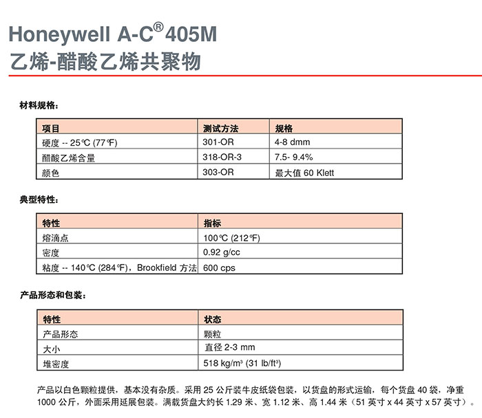 霍尼韋爾蠟粉A-C405M技術(shù)參數(shù)