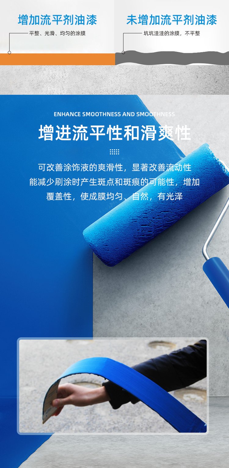 本品為特殊改性的聚硅氧烷,具有極其優異的增滑、防縮孔和流平性能。