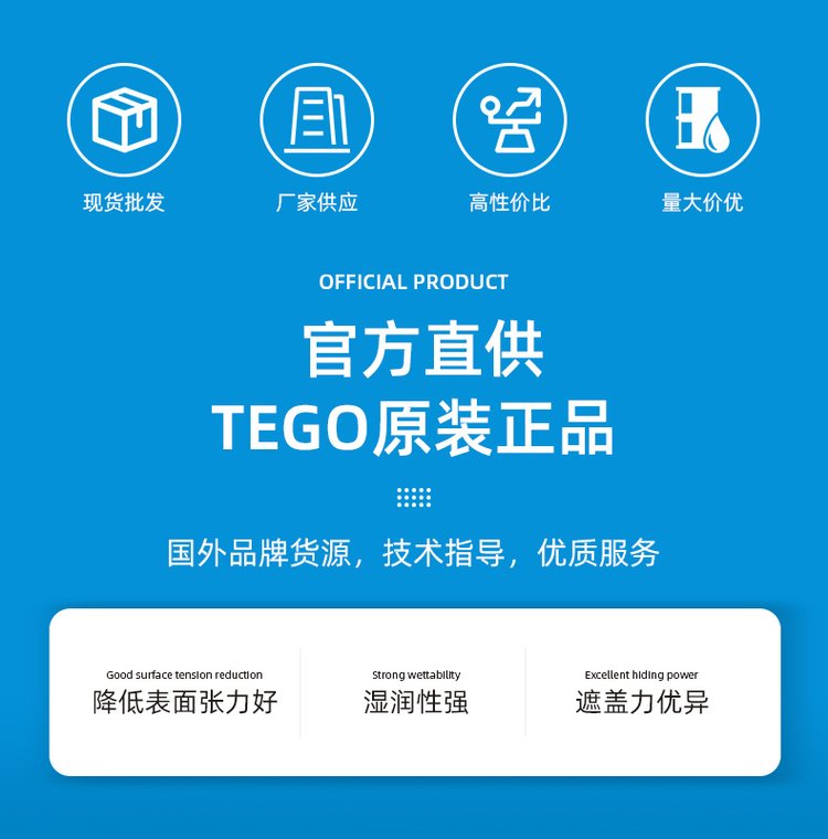 迪高TEGO Dispers 755 W是一種用于水性配方的弱陰離子型聚合物高效潤濕分散劑。適合各種類型的顏料。對有機顏料具有極佳的穩定性和降粘效果。對涂料性能影響小,因而適用于外部應用的工業和交通涂料。無溶劑。