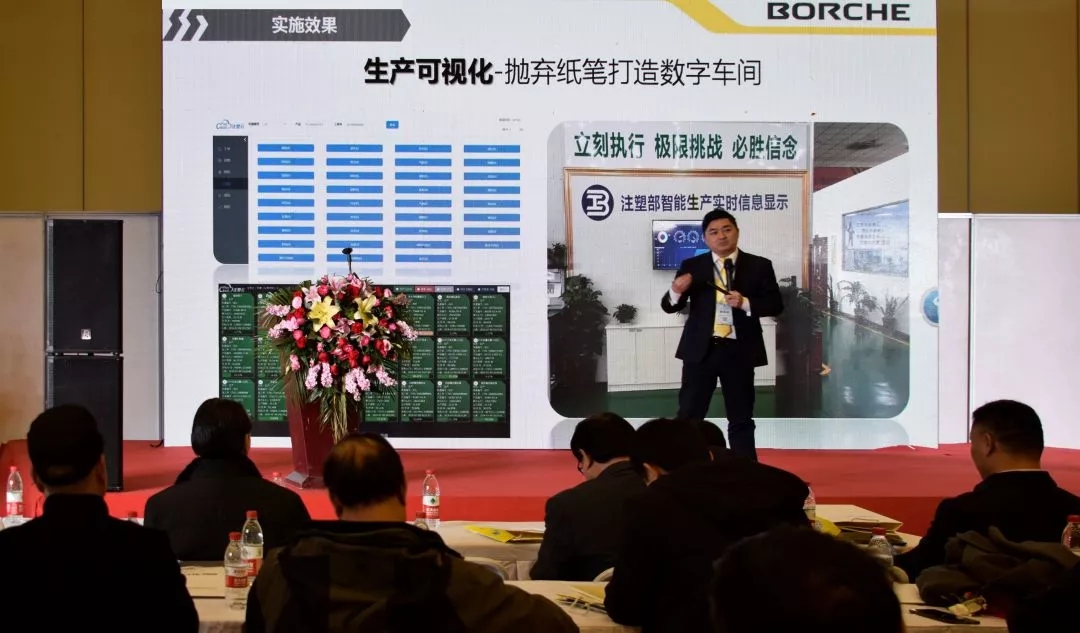 博創全資子公司廣州中和互聯網技術有限公司總經理黃土榮進行主題演講《每年降本增效10%——注塑云數字化工廠讓注塑更高效》